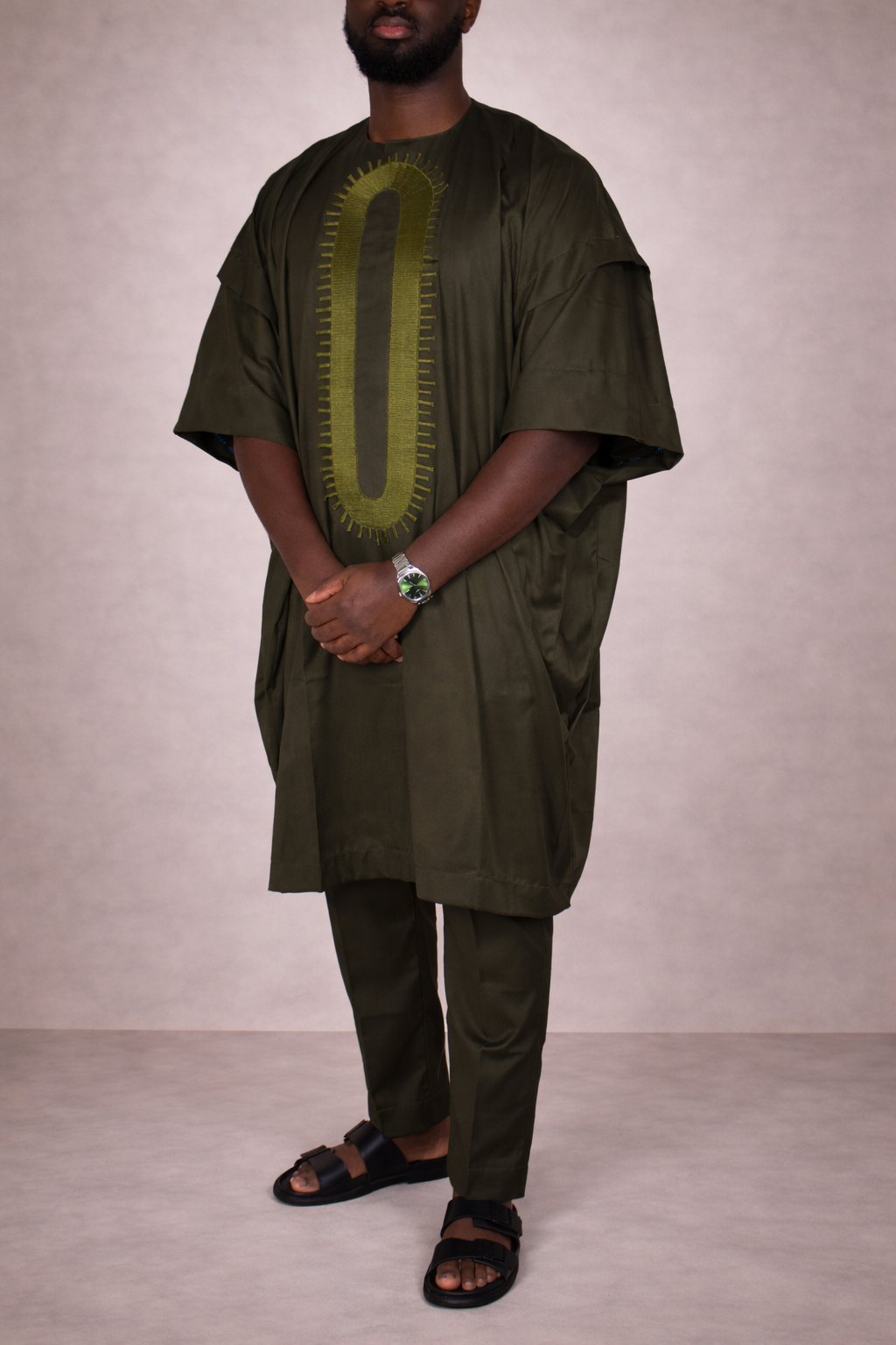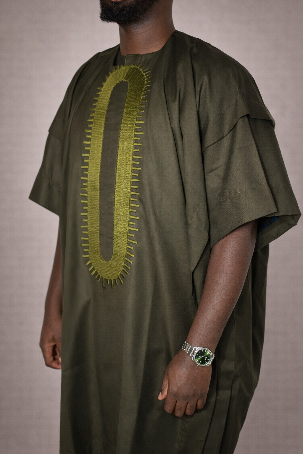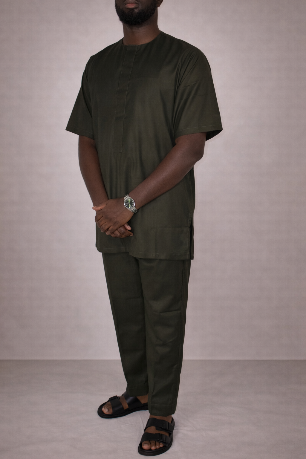 Dans sa teinte kaki naturelle, cette pièce incarne une élégance ancrée et contemporaine.